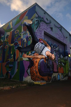 Venms is know for his power and style. Originally a B-boy, he practices a wide range of activity from martial arts to yoga.
